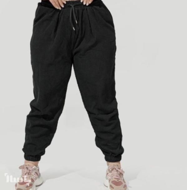 شلوار مخمل کبریتی قواره بزرگ مشکی دمپا گتدار 8058 انتخابی عالی برای خانمها نوجوان و جوان است که به دنبال راحتی و زیبایی در پوشش خود هستند.