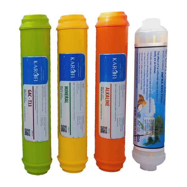 در این پک از فیلترهای پست کربن و مینرال و قلیایی برند کاروفی , و فیلتر اکسیژن ساز برند cck استفاده شده است که برند KAROFI یک برند تجاری از کمپانی بزرگ تکومن ویتنام است که محصولات خود را به بیش از 40 کشور جهان از جمله ایران صادر می کند .