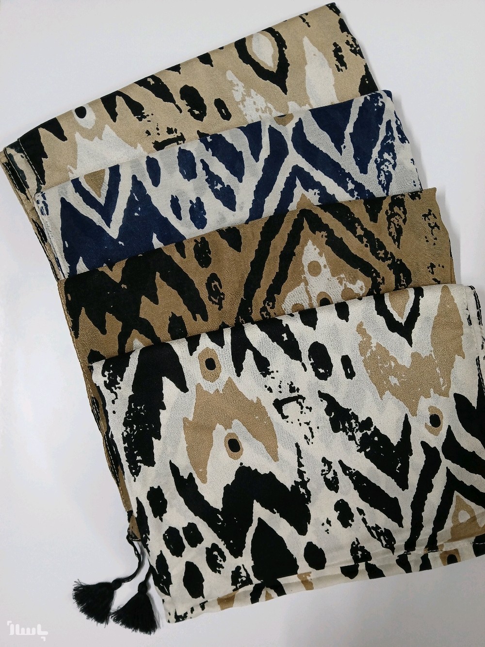 شال نخی دخترانه و زنانه طرح دار طرح جناغی منگوله دار