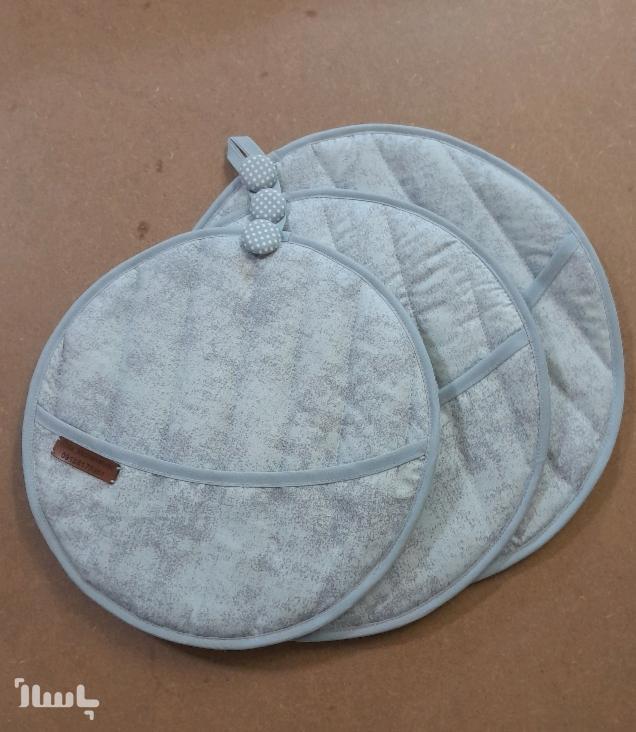 دمکنی های تولید شده در( دنیای آشپزخانه دا ) از پارچه کتان نخ تهیه شده که 100٪پنبه ای بوده وعلاوه بر مقاوم بودن در برابر حرارت قابلیت جذب بالای بخار آب را دارد و در بین دو لایه از این پارچه پشم شیشه فشرده استفاده شده که آنهم در جذب رطوبت تاثیر به سزایی دارد و این محصول با نوار اریب کتان تزئین شده که علاوه بر زیباتر شدن محصول در برابر حرارت نیز مقاوم می باشد.