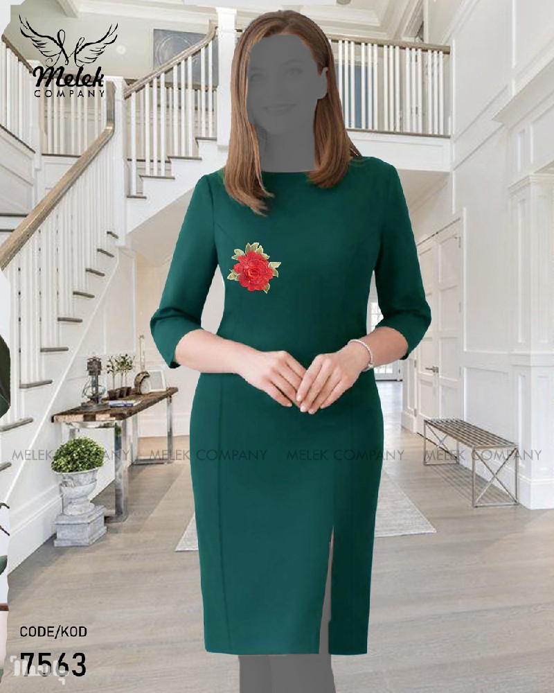پیراهن مجلسی یقه گرد آستین سه ربع