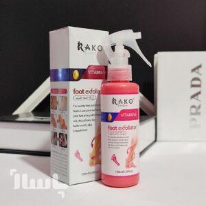 اسپری رفع ترک پا راکو مدل ویتامین E لایه بردار و روشن کننده ی پا و ترک