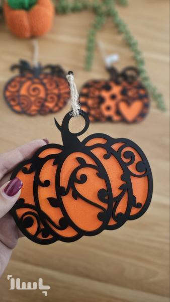 عنوان: آویز دکوری طرح کدو دو تکه: حس پاییزی را به خانه خود بیاورید از آدجاشاپ!