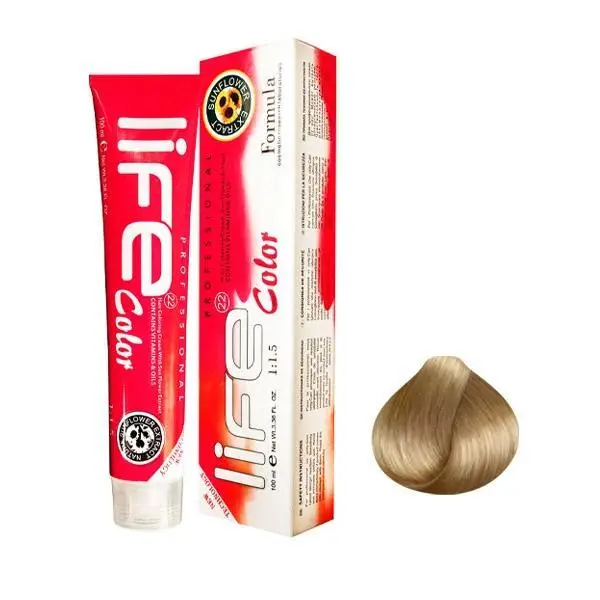 رنگ مو لایف حجم 100میل Life، رنگ مو دائمی است که قادر است رنگ موجود موها رو تغییر داده و تیره تر یا روشن تر کند. قدرت پوشش رنگ مو لایف حجم 100میل روی موهای بسیار عالی بوده و در هر شرایطی کاملا پایدار است. حاوی روغن آرگان، روغن هسته ی انگور، روغن بادام، ویتامین، نرم کننده و حالت دهنده ی مو می باشد که باعث درخشندگی مو شده و از خشک شدن و شکنندگی مو جلوگیری می کند. این رنگ مو لایف تولید کشور ایتالیا می باشد.