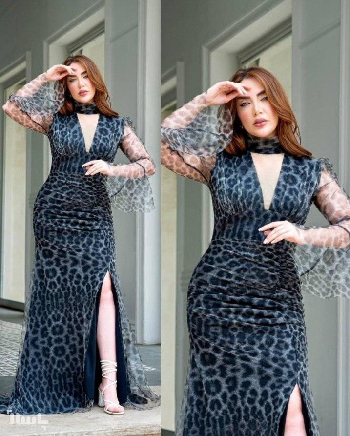 پیراهن مهمانی زنانه تور حریر پلنگی مدل پریزاد
