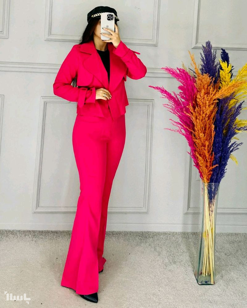 جنس : سوپرمازراتی درجه یک شلوار چاک بغل دارد سایز(1)36-38-40 سایز(2)42-44 قدشلوار 100 قدنیم تنه 45 قد آستین 60