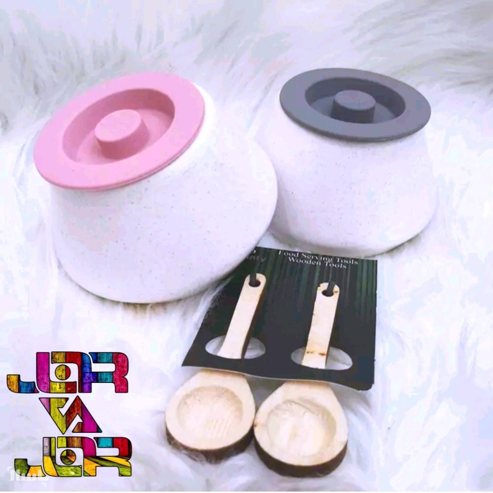 بانکه سرامیکی جا ادویه با قاشق چوبی پاسماوری قندان