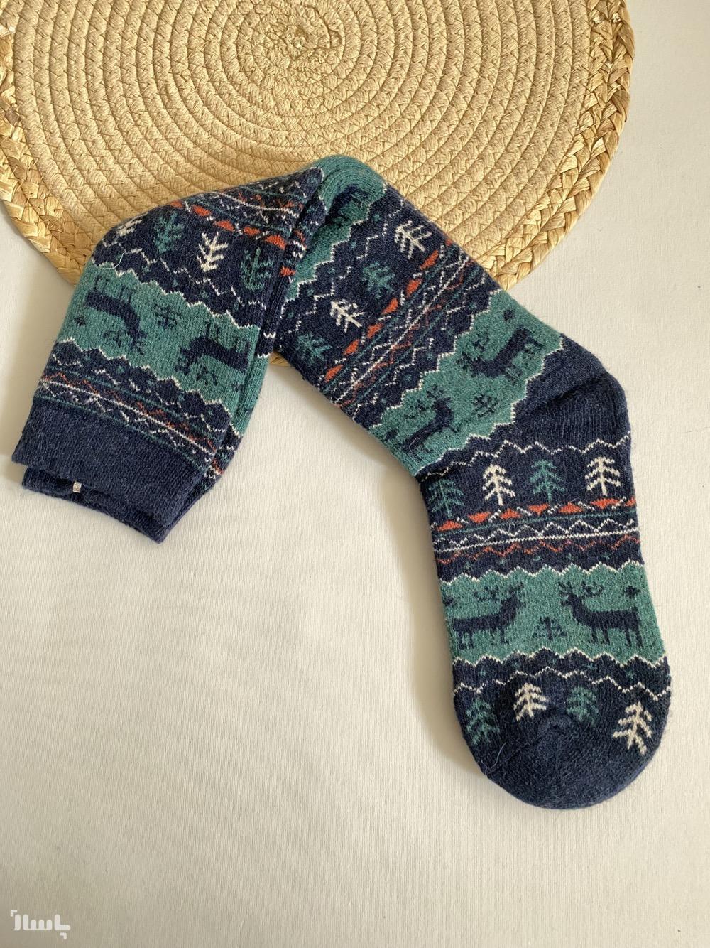 جوراب پشمی طرح برفی ساق بلند ، زمستانه تا سایز 41