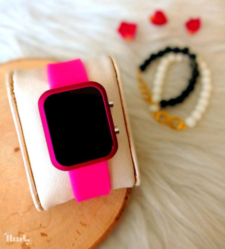 ساعت ال ای دی بندژله ای صورتی مستطیلی
