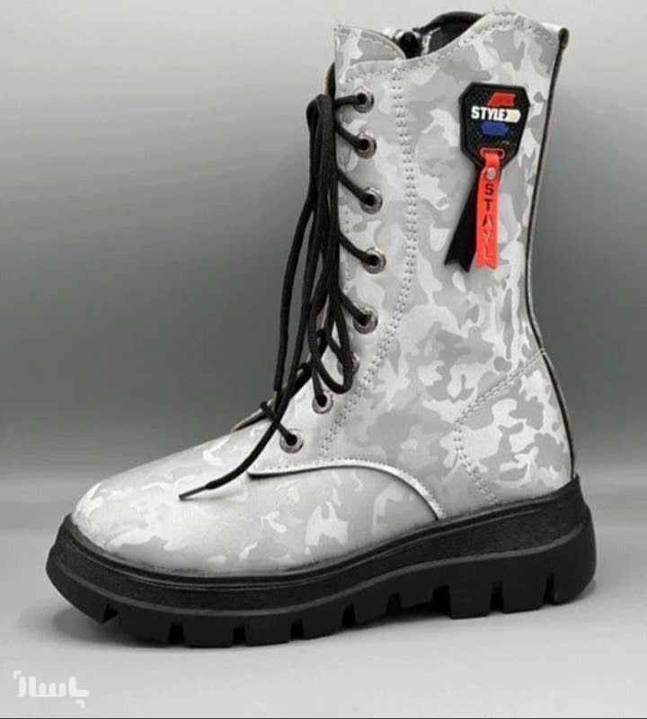 این بوت ساق بلند بند دار کنار زیپ دار جنس پتینه نقره ای