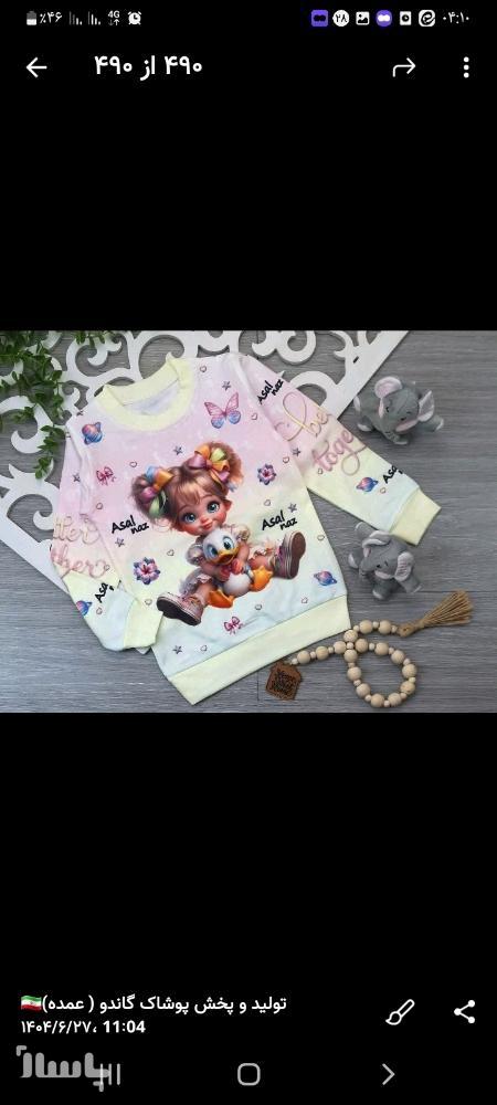 بلوزآستین دار دخترانه طرح دخترواردک سایزبندی 40 45 5 55 60