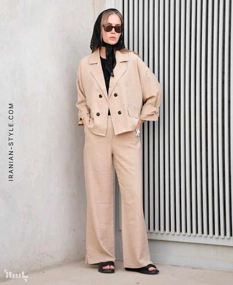 ست کت شلوار زنانه مدل کژال جنس شانتون درجه یک و خنک