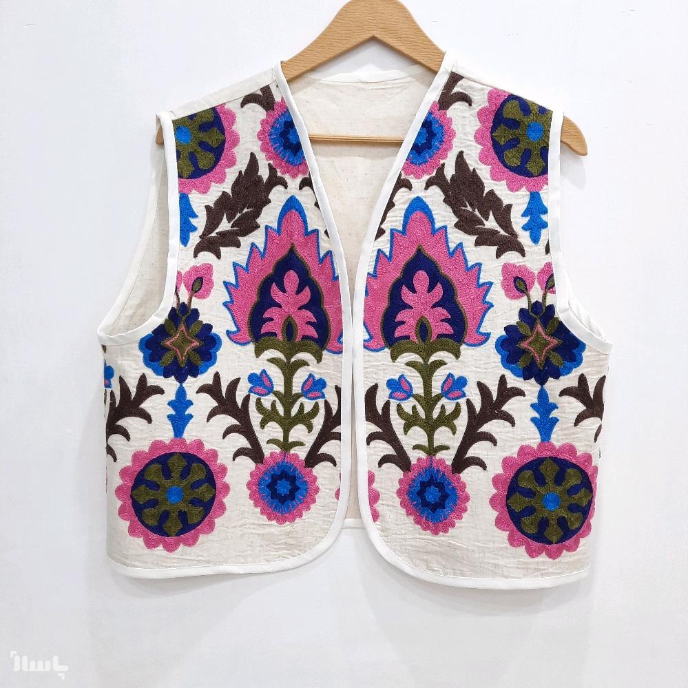 جنس ان لینن سوزندوزی است. پشت کار لینن ساده است. قد ان حدود 50س است.