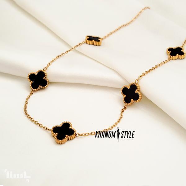 گردنبند ونکلیف استیل زنانه از مجموعه “خانومی استایل” با طراحی مینیمال و الهامگرفته از سبک لوکس ون کلیف، همراه با روکش طلایی براق و نگینهای مشکی، جلوهای منحصربهفرد به استایل شما میبخشد. این گردنبند از استیل ضد زنگ با کیفیت ساخته شده که در برابر زنگزدگی و تغییر رنگ بسیار مقاوم است و برای استفاده روزمره یا رویدادهای خاص گزینهای ایدهآل است. با قیمت مناسب، این محصول حس داشتن جواهری لوکس را به شما هدیه می دهد و به دلیل سازگاری با پوستهای حساس، انتخابی ایمن و مطمئن محسوب میشود. نگهداری آن بسیار ساده است و با رعایت چند نکته کوچک، درخشش آن برای مدتها حفظ خواهد شد. این گردنبند در جعبه کادویی شیک عرضه میشود که آن را به هدیهای بینظیر برای مناسبتهایی مانند تولد یا سالگرد تبدیل میکند. طرح چهاربرگ با نگین های مشکی آن بهویژه برای سلیقههای زنانه و جوانان بسیار جذاب و خاص است.