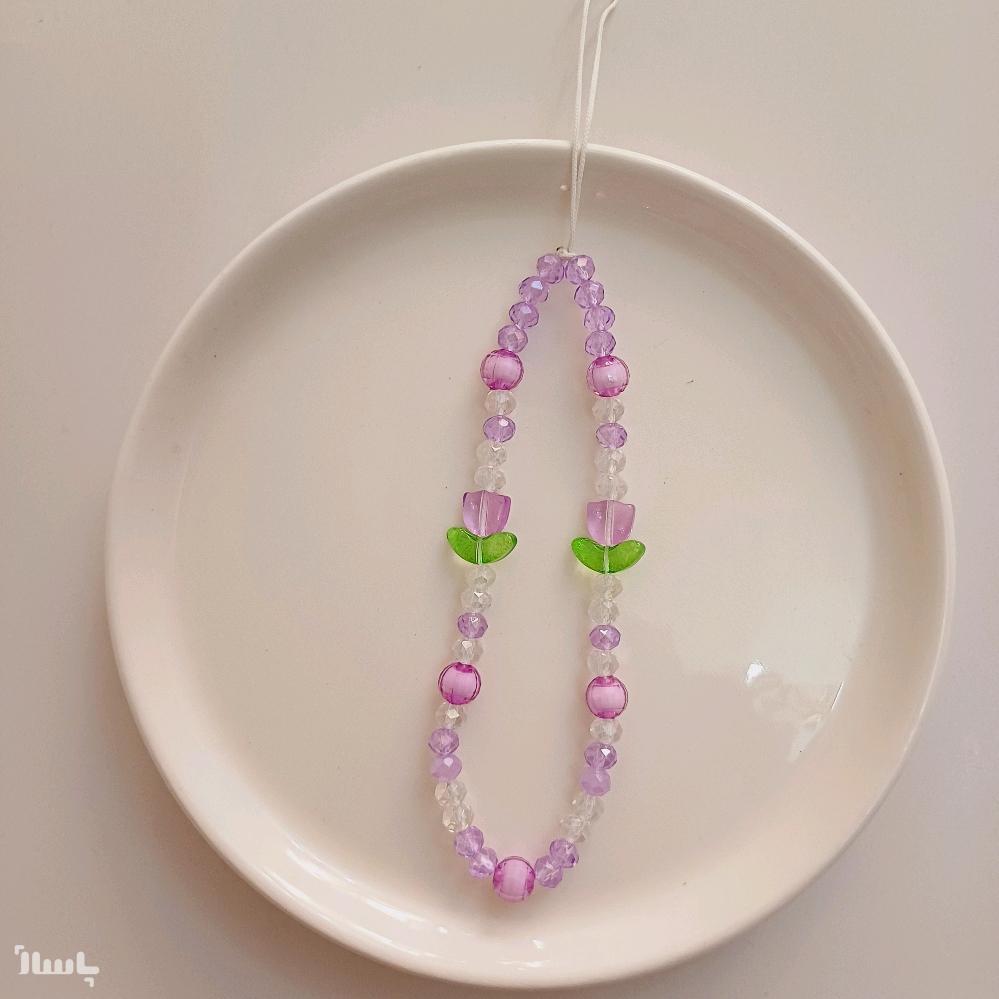 آویز موبایل فانتزی طرح گل لاله بنفش