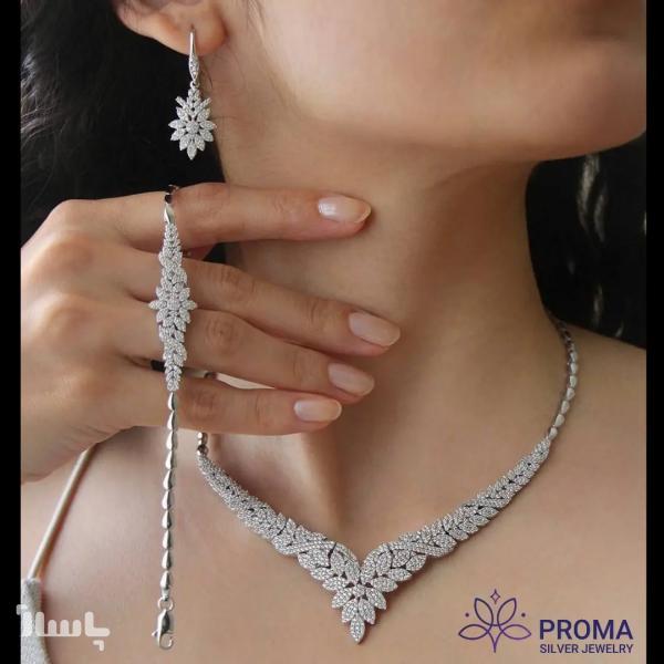 سرویس نقره زنانه جواهری طرح گلناز مدل PRM58