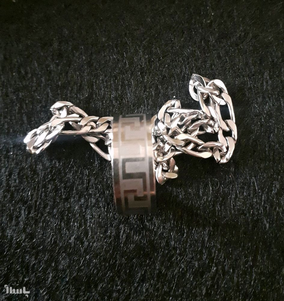 این نیم ست شامل دستبند وانگشتر طرح ورساچه می باشد جنس انگشتر استیل بوده ورنگ ثابت می باشد