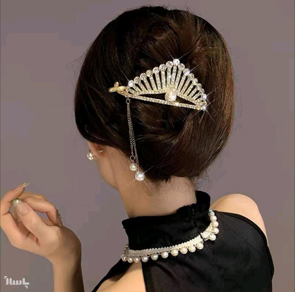 گیره چفتی مو زنانه طرح تاج آویز دار