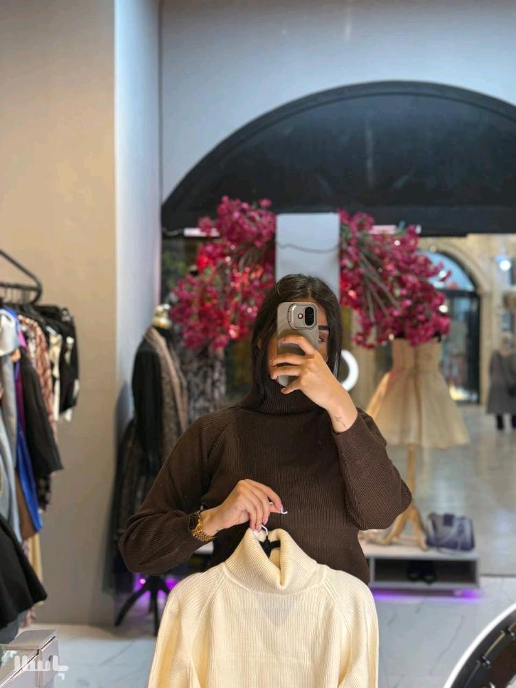 بلوز بافت قهوهای دخترانه زنانه یقه اسکی خارجی