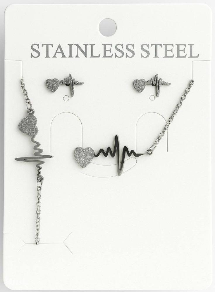 نیم ست استیل گردنبد و گوشواره و دستبد طرح ضربان قلب