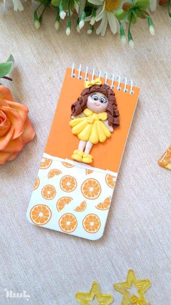 دفترچه صد برگ سیمی با تزئین عروسک دستساز خمیری و برگه های یک رو شطرنجی و یک رو سفید