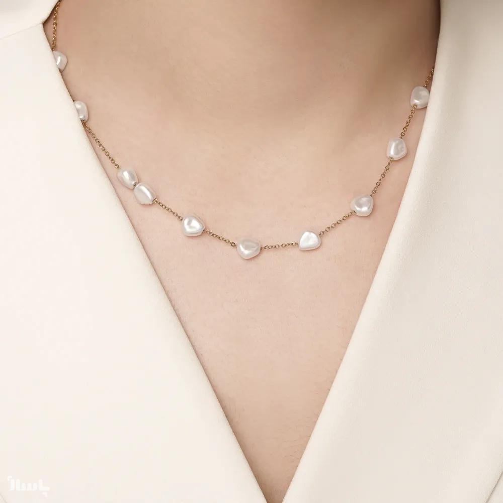 گردنبند استیل طرح مروارید پرورشی طلایی
