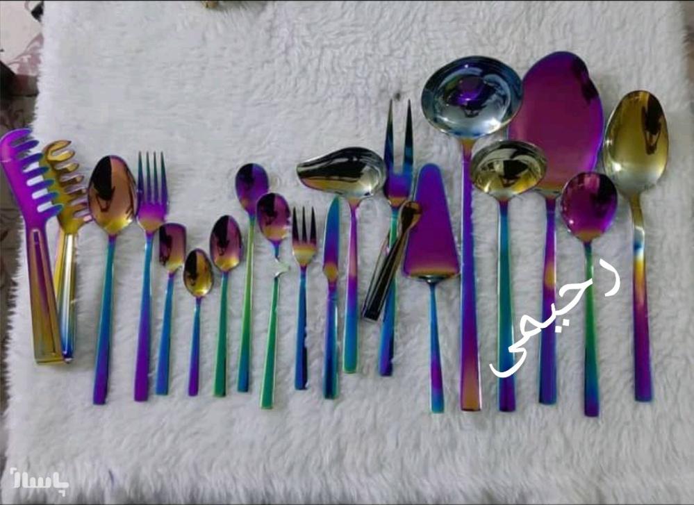 سرویس قاشق و چنگال 24 نفره 144 پارچه هفت رنگ یونیک المان حک ضمانت رنگ