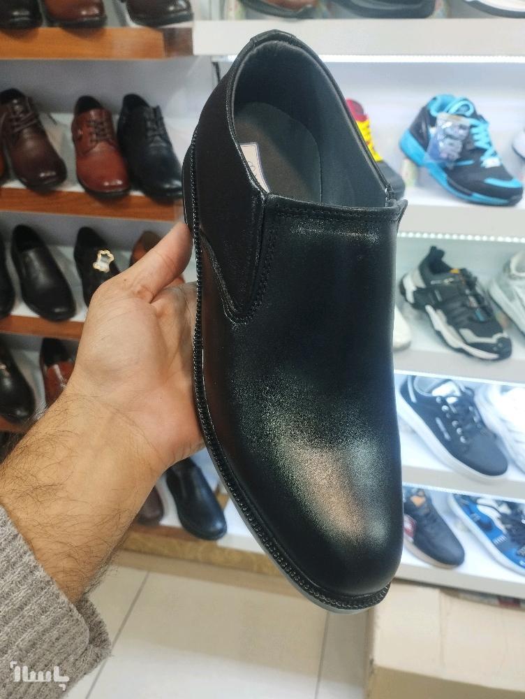 کفش تمام چرم طبیعی مردانه بدون بند با رویه چرم گاوی و آستر و کفی چرم طبیعی گوسفندی و زیره پی وی سی سایز بندی 40 تا 44