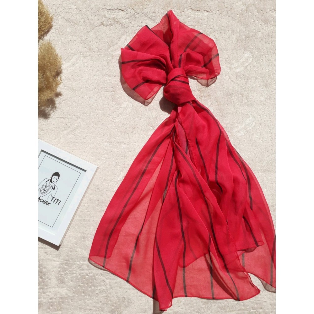 شال حریر صورتی سرخابی راه راهی شالحریر صورتی