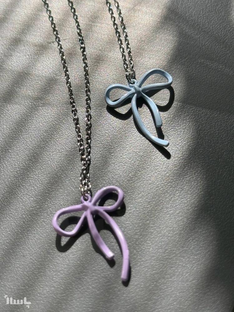 گردنبند پاپیون ترند بنفش و آبی استیل