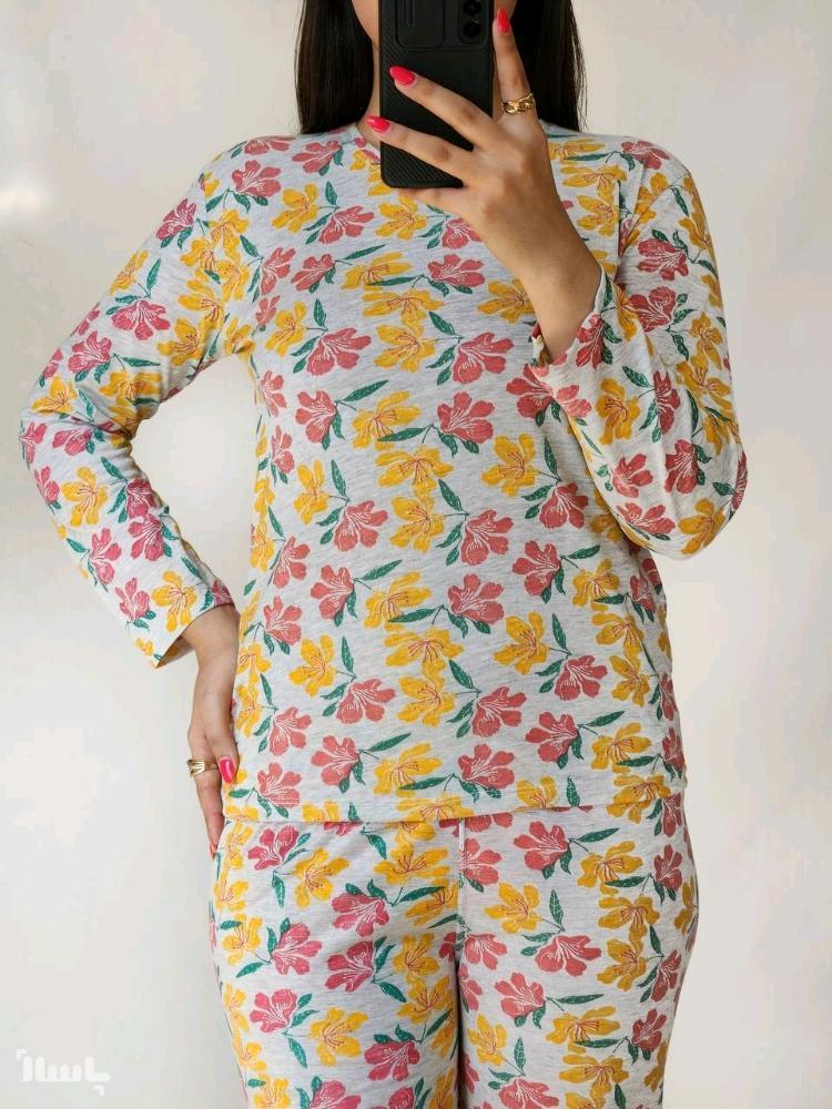ست بلوز و شلوار زنانه از نخ پنبه ملانژ با بافت نرم و لطیف، انتخابی ایدهآل برای خانه، استراحت یا استایل روزمره.