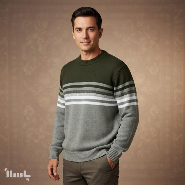 ژاکت بافت راهراه مردانه رنگ سبز و سبزروشن | مدل شیک و گرم زمستانی