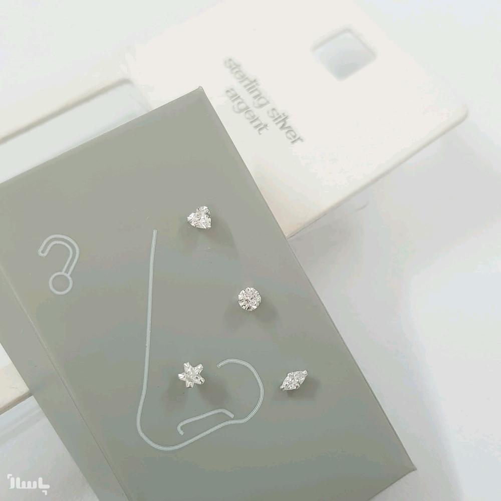 پک چهار عددی پیرسینگ بینی نگین دار جنس نقره عیار925 در طرح های مختلف ، تولید کشور تایلند ، شناسنامه دار