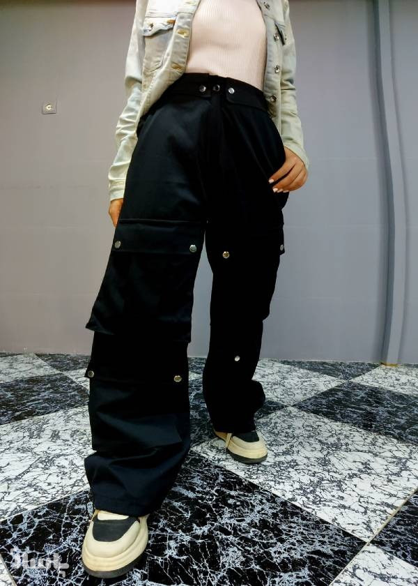 شلوار کارگو بگ مشکی زنانه 6 جیب