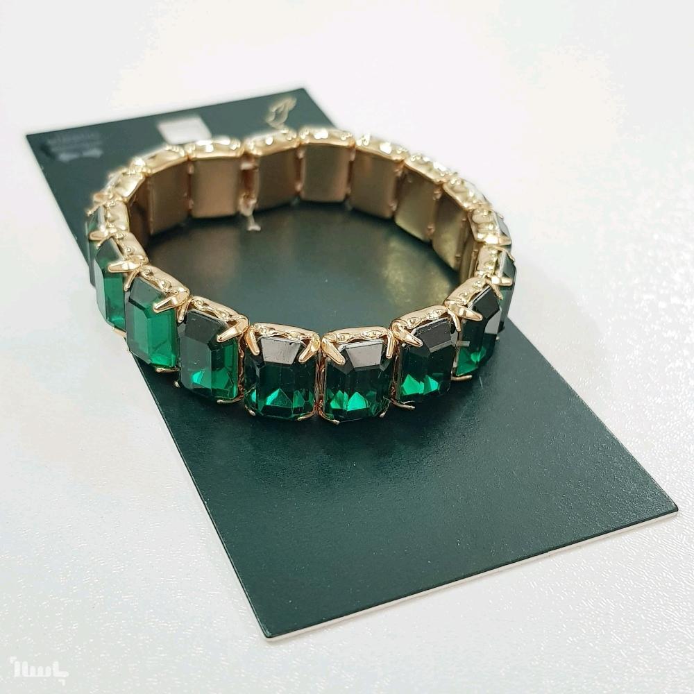 دستبند بنگل کشی طلایی کریستالی سبز رنگ ، کار فوق العاده زیبا و درخشان