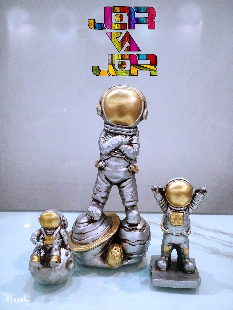 مجسمه فضانورد 3 عددی رنگ نقره ای دکوری