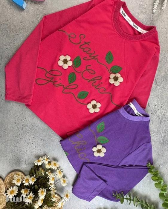 بلوز دخترانه نخی گل برجسته رنگ بندی