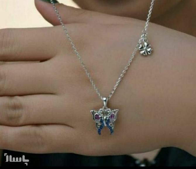 گردنبند آویز دار چروانه نگین سنتتیک آبکاری طلا وارداتی ایتالیایی