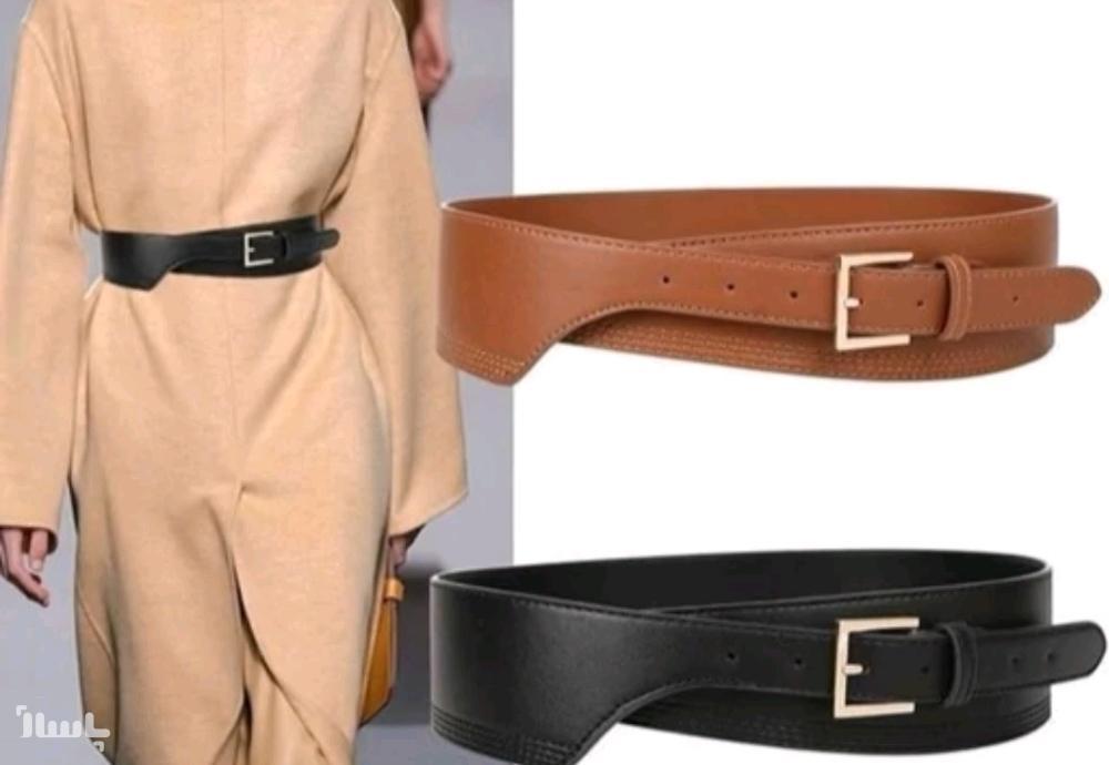 کمربند مجلسی زنانه از چرم صنعتی، مناسب لباس زنانه رنگ مشکی و عسلی