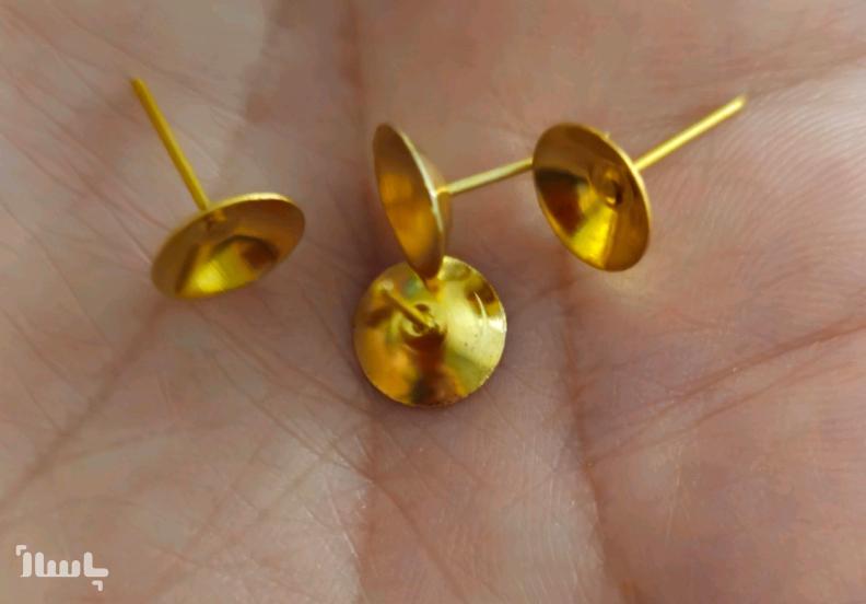 میخ گوشواره طلایی ته گرد بشقابی 10 عددی