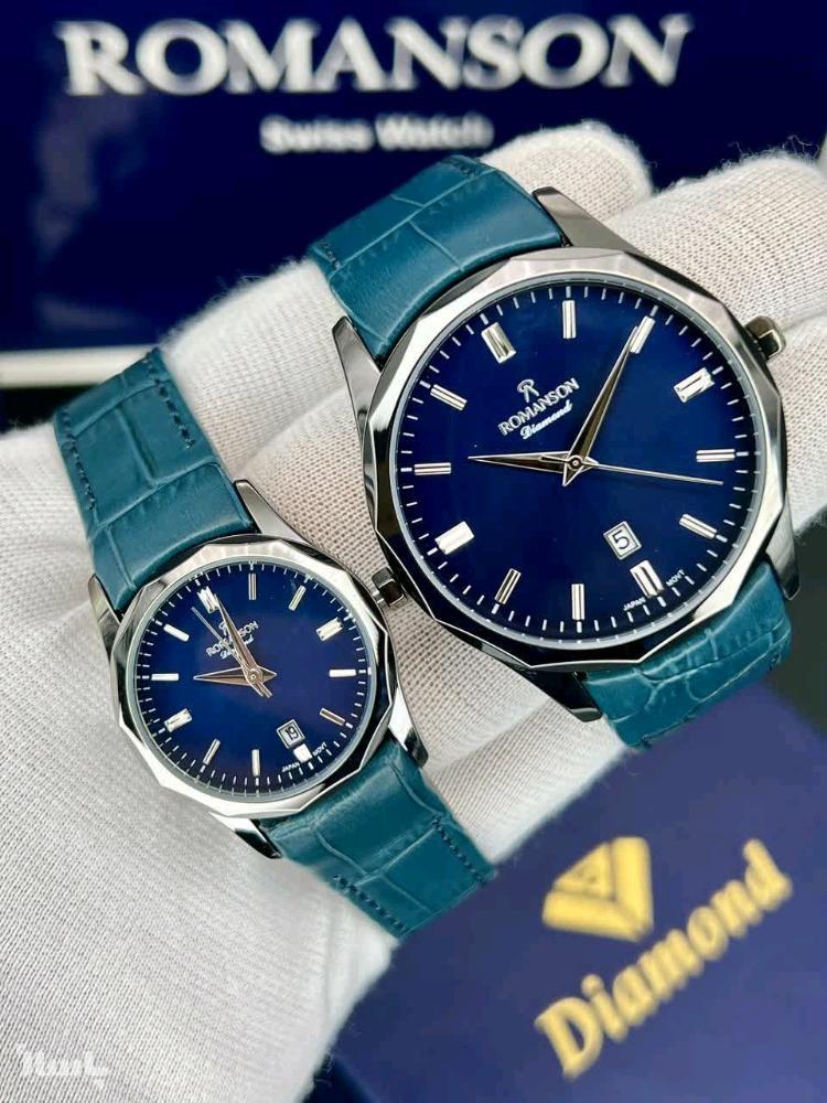 ساعتمچی ست رومانسون بند چرمی آبی رنگ ROMANSON