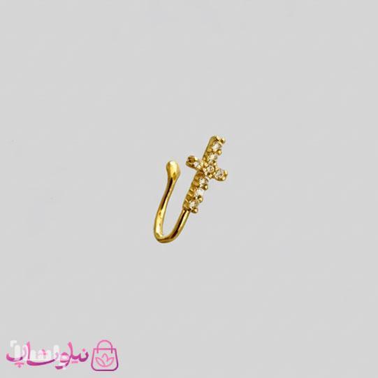 پیرسینگ فیک بینی یا گوش طرح صلیب طلایی نگیندار کد 849