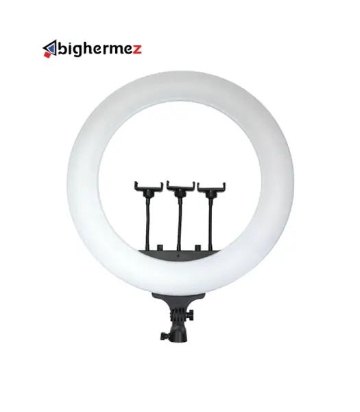رینگ لایت 56 سانتیمتری با قابلیت نوردهی RGB، ابزاری حرفهای برای عکاسی، تولید محتوا، آرایشگری و استریمینگ است. این رینگلایت، نوری یکنواخت و قابل تنظیم فراهم میکند که باعث بهبود کیفیت تصاویر و ویدیوهای شما میشود.