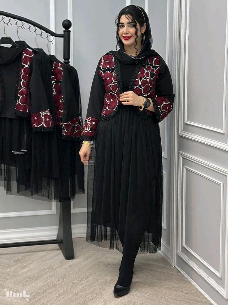 جنس : کت کرپ مازراتی با خرجکار گلدوزی شده دامن و شال تور
