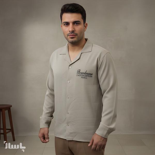پیراهن مردانه مازاراتی آستین بلند رنگ خاکی