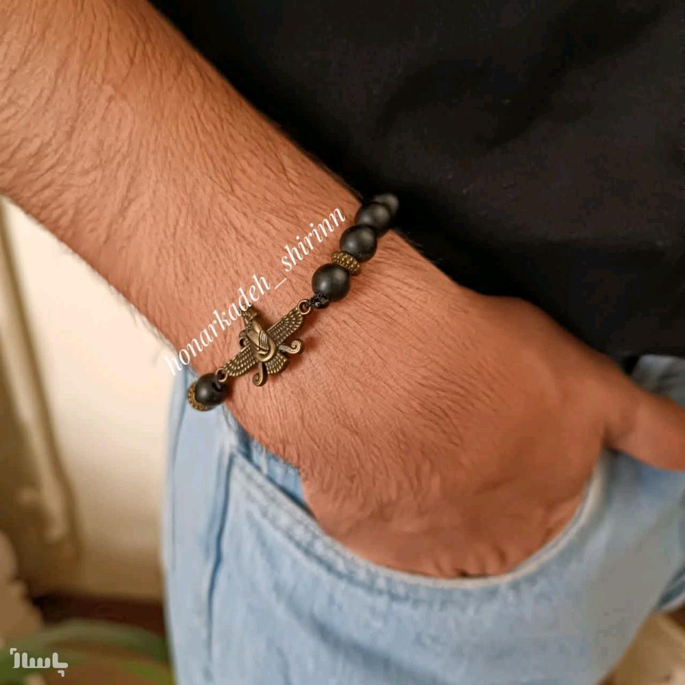 دستبند مردانه سنگ اونیکس مشکی با طرح فروهر