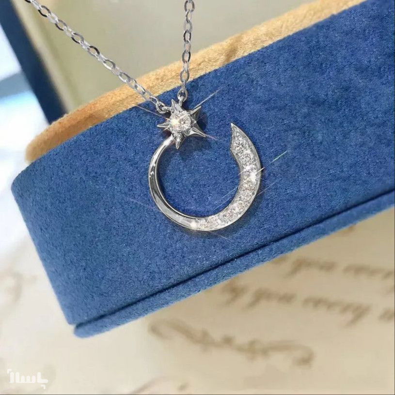 - گردنبند زیبا طرح ماه و ستاره نگین دار ،