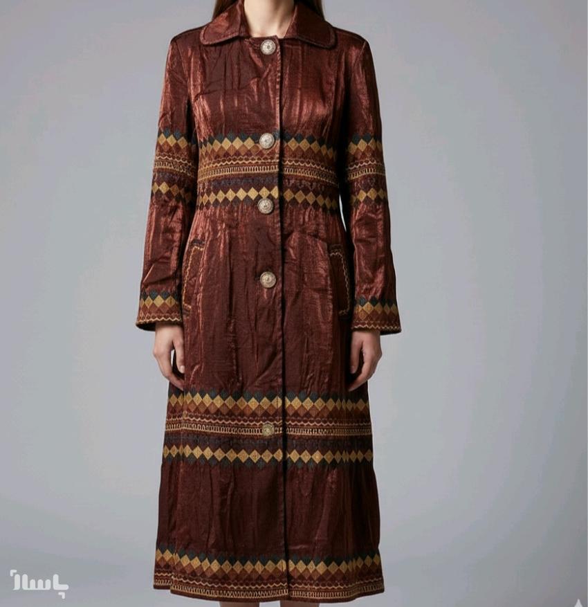 مانتو مجلسی ساتن مدل بلند طرح گلدوزی