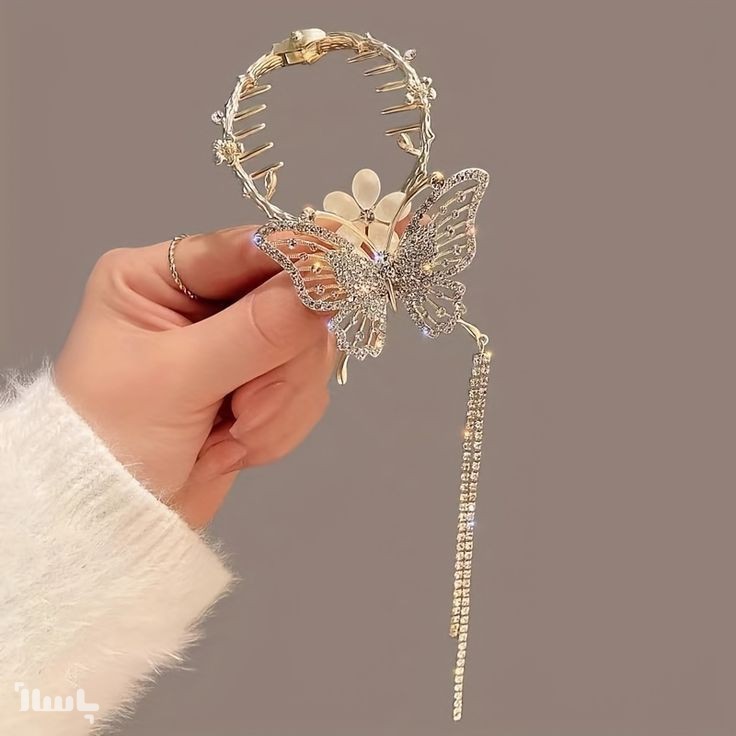 گیره مو گوجه ای طرح پروانه نگین دار و گل پنج پر