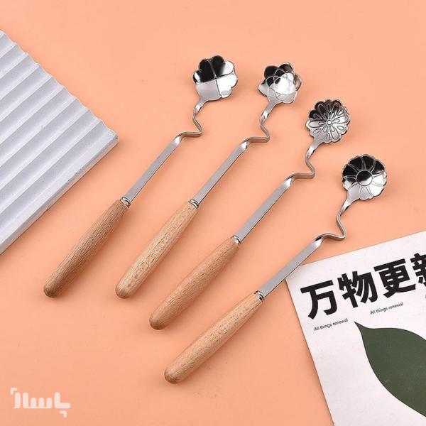 قاشق دسر دسته چوبی گل مدل آویز(سیلور)